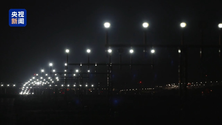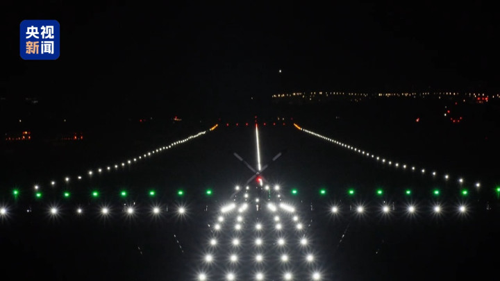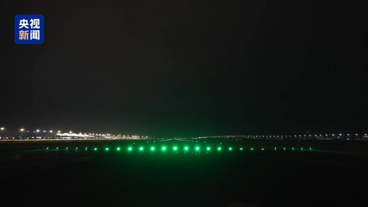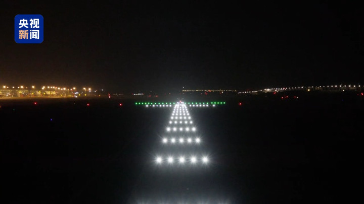 10月30日凌晨0时,白云机场第五跑道正式投运,现场依次亮起助航灯光。