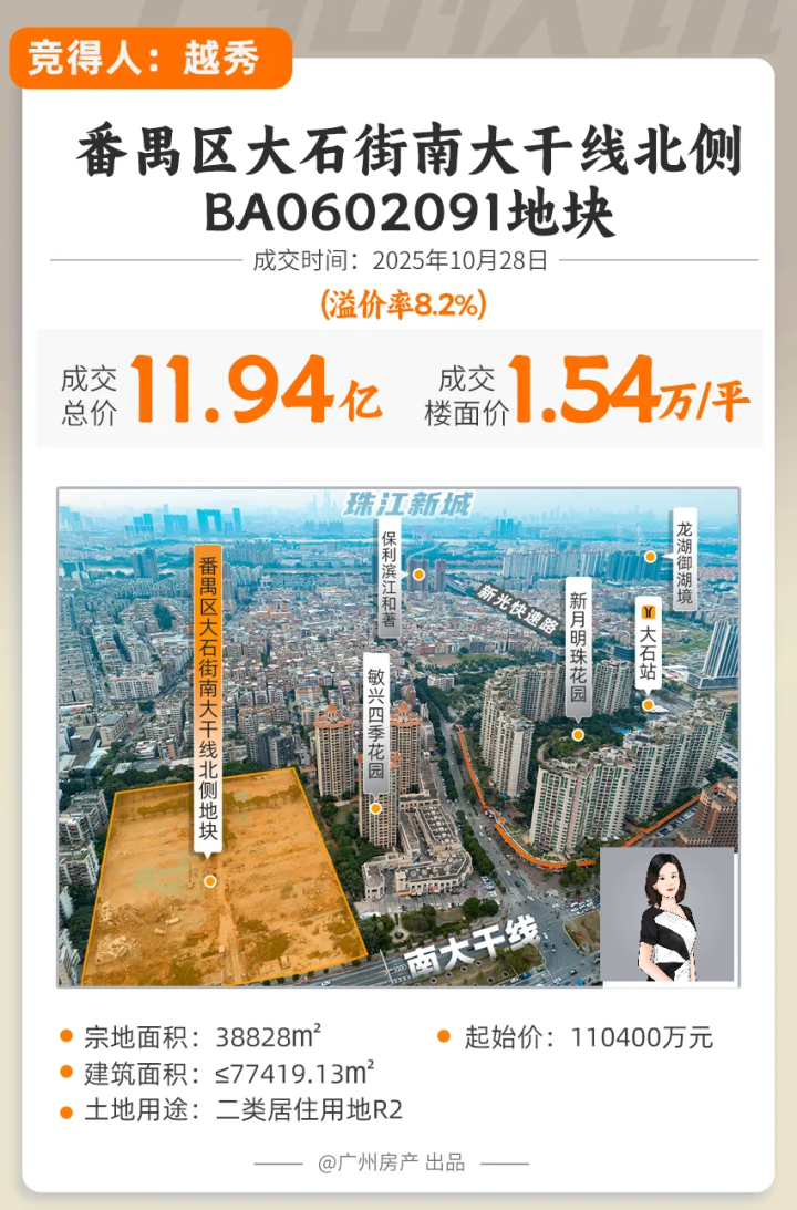刚刚,已经被越秀拿下,楼面价1.54万/㎡。