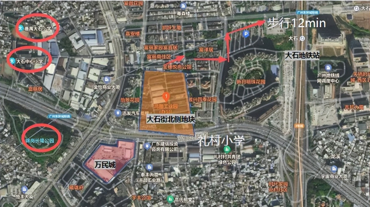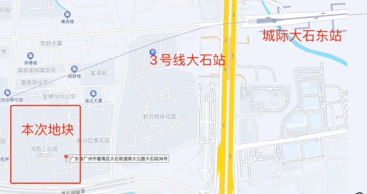 地块紧邻南大干线,距离3号线大石地铁步行约800米,城际铁路大石东站约1000米左右。