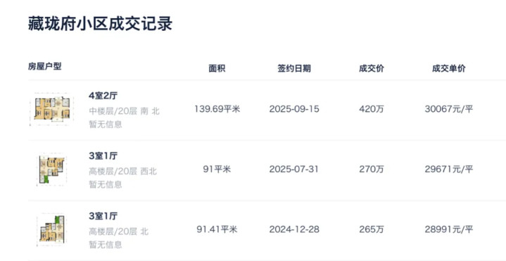 附近的次新房藏珑府,成交均价在3万左右。260-270万能买到91的3房。